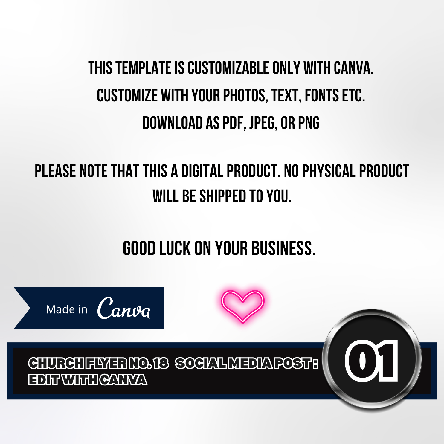 1 Editable Canva Template (1080x1080px – Instagram/Facebook post size)Fully customizable text, fonts, and colorsEasy drag-and-drop editing — no design skills neededDownload in JPG, PNG, or PDF